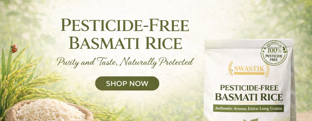 At Swastik International, we bring you Pesticide-Free Basmati Rice cultivated with care and responsibility. Grown using controlled farming practices and monitored sourcing standards, our basmati rice is naturally protected to ensure purity, safety, and authentic taste.