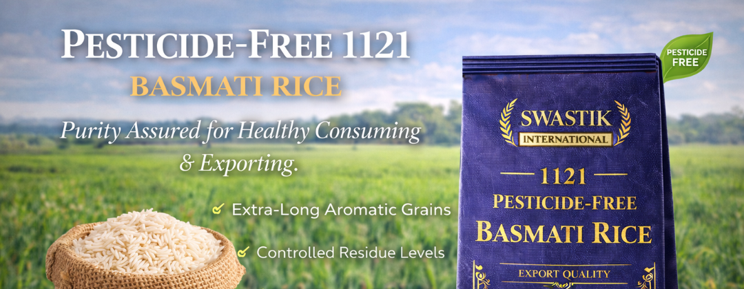 At Swastik International, we follow strict sourcing standards, hygienic processing, and export-grade quality inspection to meet global compliance requirements. Our pesticide-free 1121 variants are ideal for health-conscious consumers and international bulk buyers seeking residue-controlled basmati rice.